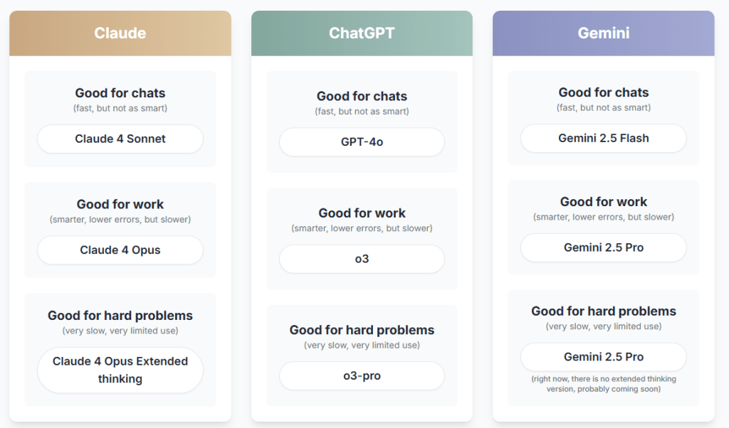 Ethan Mollick, in his recent Using AI Right Now: A Quick Guide, made a great point that GenAI newbies often miss that after you pick a GenAI platform (e.g., ChatGPT, Anthropic Claude, Google Gemini), you should be intentional when you pick a specific model, based on your query. It's amazing how much better, as an example, ChatGPT o3 is at more detailed questions (I think of it as a step between a quick query and using a full deep-research query (which are so great when you're researching a complex topic).