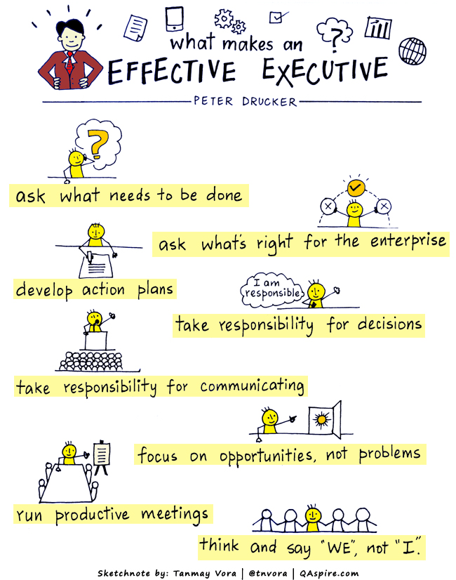 When looking forward in your career future, another great resource is Drucker's Effective Executive article, which QAspire Consulting summarized so well in this image: